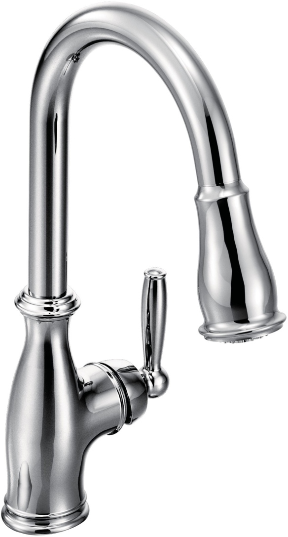 Brantford kitchen and bar/prep faucets make a traditionally styled space feel truly finished. The spout enhances the curvature of the faucet body and handle for a beautiful, polished look. The pulldown spray wand offers Moen’s exclusive Power Boost™ technology for improved functionality at your fingertips.Read More